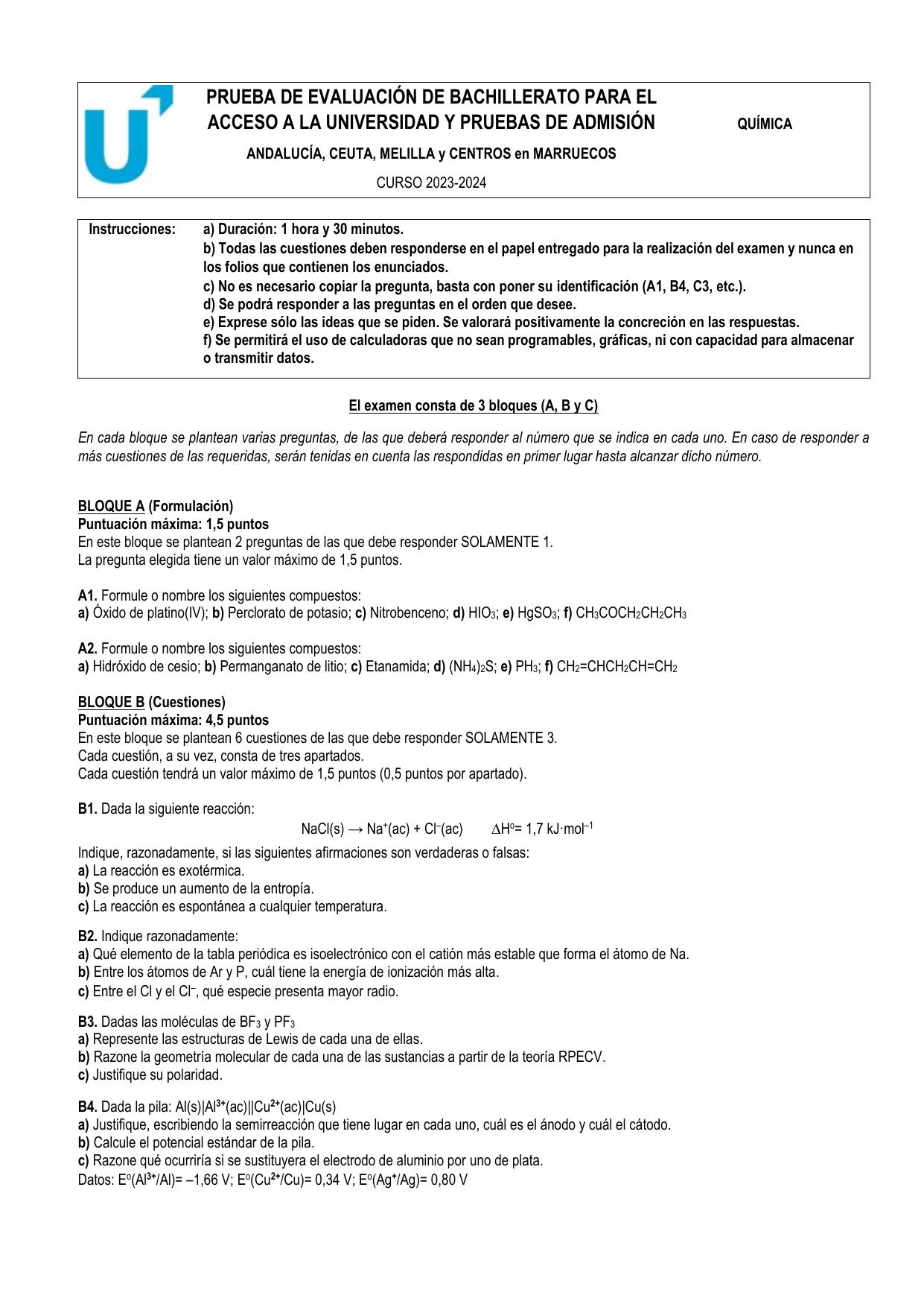 a) El tipo de enlace presente en cada una.b) Cuál tendrá menor punto de fusión.c) Cuál tendrá mayor solubilidad en agua.a) En el , el potasio es un metal con baja carga nuclear efectiva () y su electrón diferenciador en el nivel experimenta un gran apantallamiento (), lo que facilita su pérdida para alcanzar la configuración de gas noble como . El cloro posee una mayor sobre su nivel de valencia , lo que le otorga una elevada tendencia a captar un electrón para formar el anión . La unión se produce por la atracción electrostática entre estos iones, dando lugar a un enlace iónico. En la molécula de , al ser dos átomos idénticos, ambos poseen la misma y atraen el par de electrones compartido con la misma intensidad, estableciendo un enlace covalente no polar.b) El tendrá un menor punto de fusión. Se trata de una sustancia molecular cuyas moléculas no polares están unidas únicamente por fuerzas de dispersión de London, que son interacciones intermoleculares muy débiles y fáciles de vencer con poca energía térmica. Por el contrario, el es un compuesto iónico que forma una red cristalina tridimensional donde los iones están unidos por fuerzas culómbicas muy intensas. La rotura de esta red para pasar al estado líquido requiere una temperatura mucho más elevada debido a su alta energía reticular.c) El tendrá una mayor solubilidad en agua. El agua es un disolvente fuertemente polar que puede interaccionar con los iones de la red cristalina mediante fuerzas ion-dipolo. Los polos negativos de las moléculas de agua rodean a los cationes y los polos positivos rodean a los aniones . Este proceso de hidratación libera energía que compensa la energía de red del sólido, permitiendo su disolución. En cambio, el es una molécula no polar y no puede establecer interacciones atractivas significativas con el dipolo del agua, resultando casi insoluble.